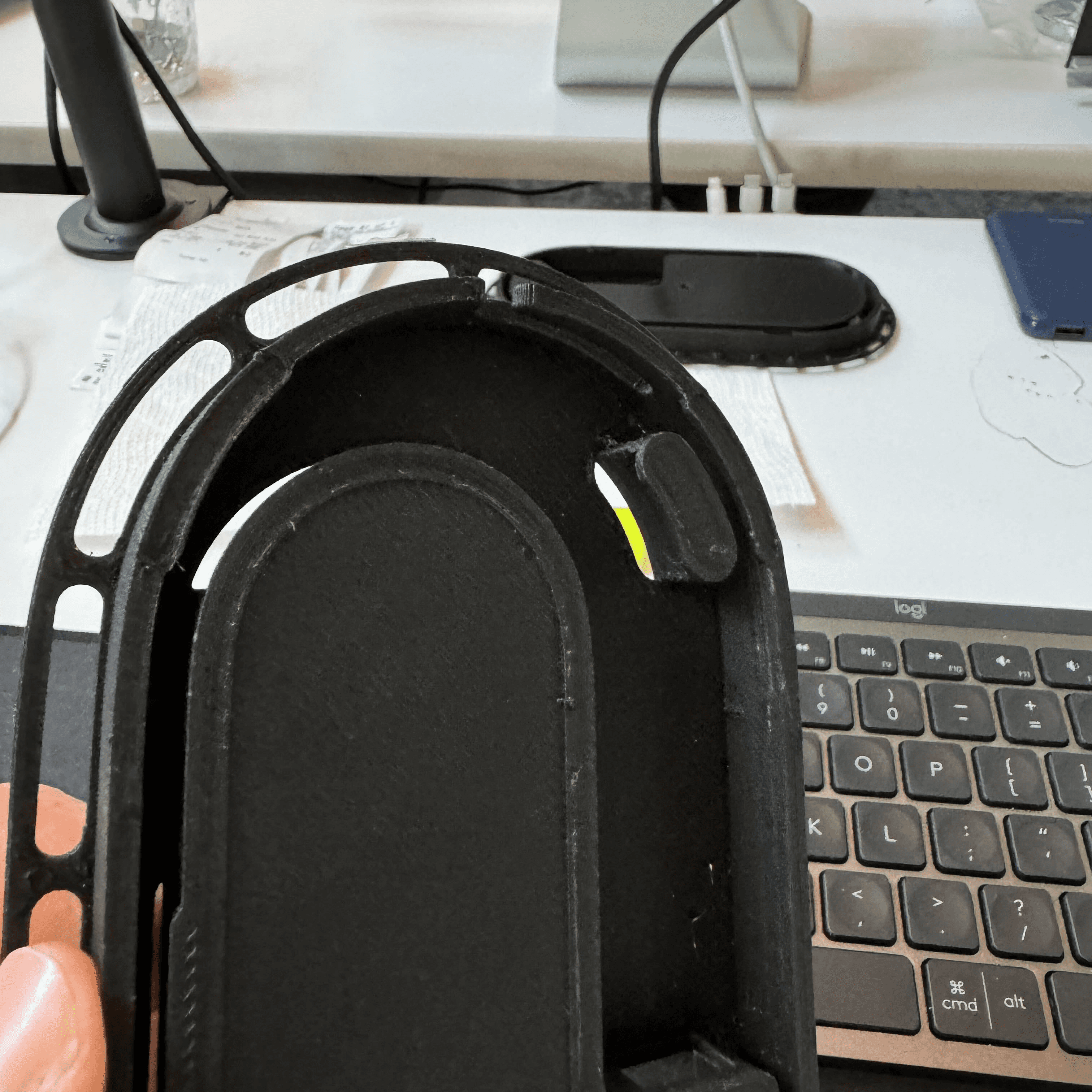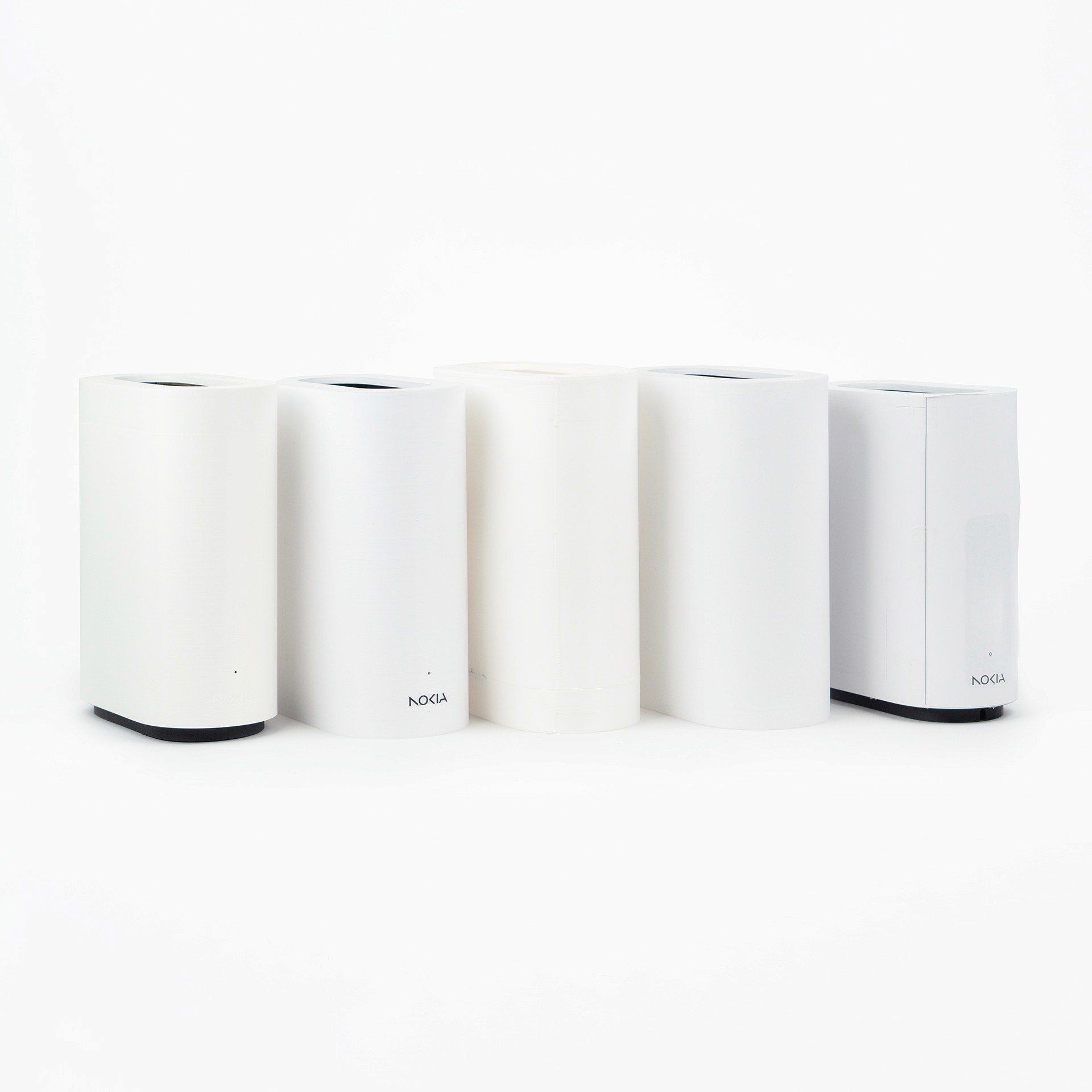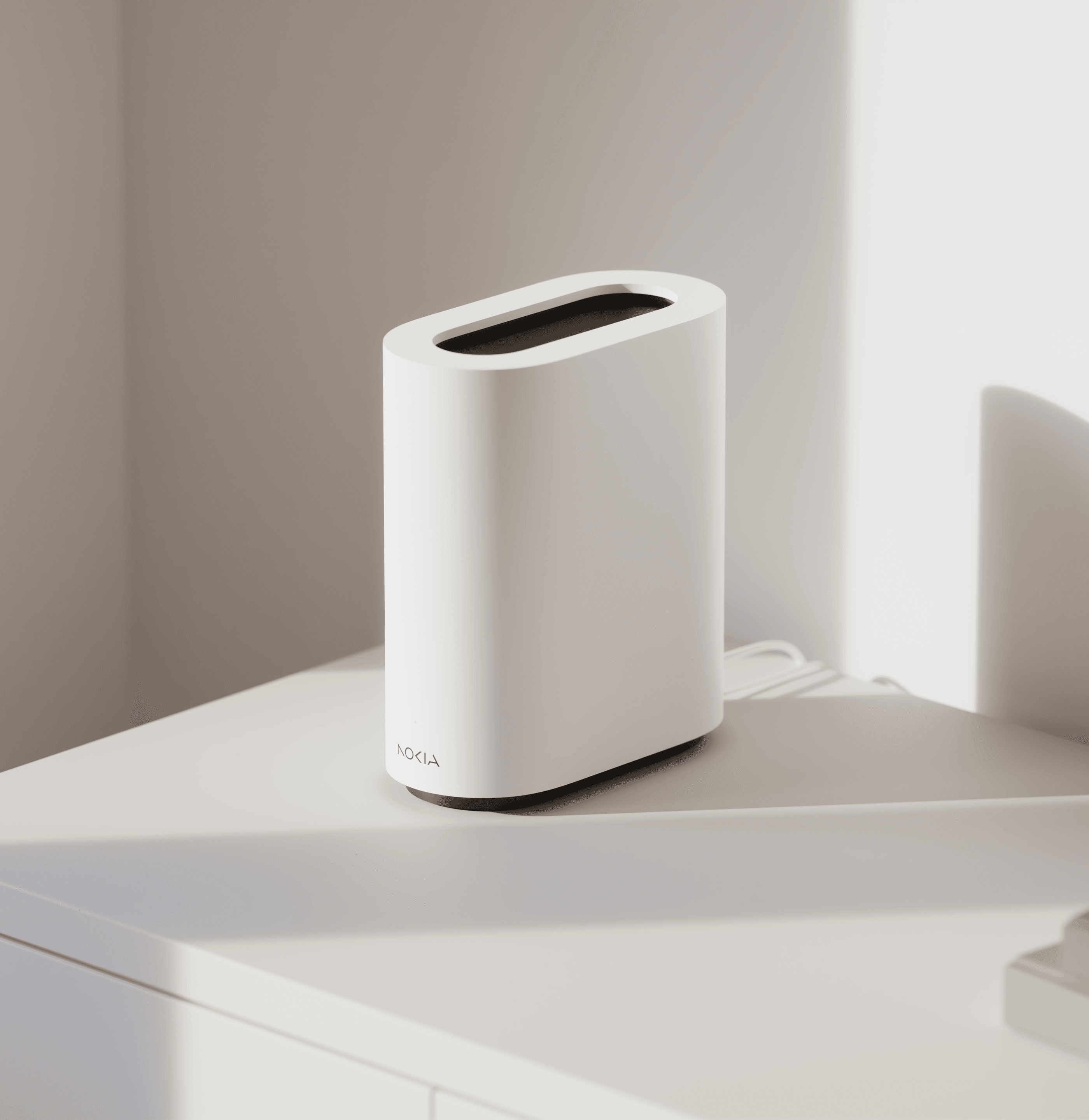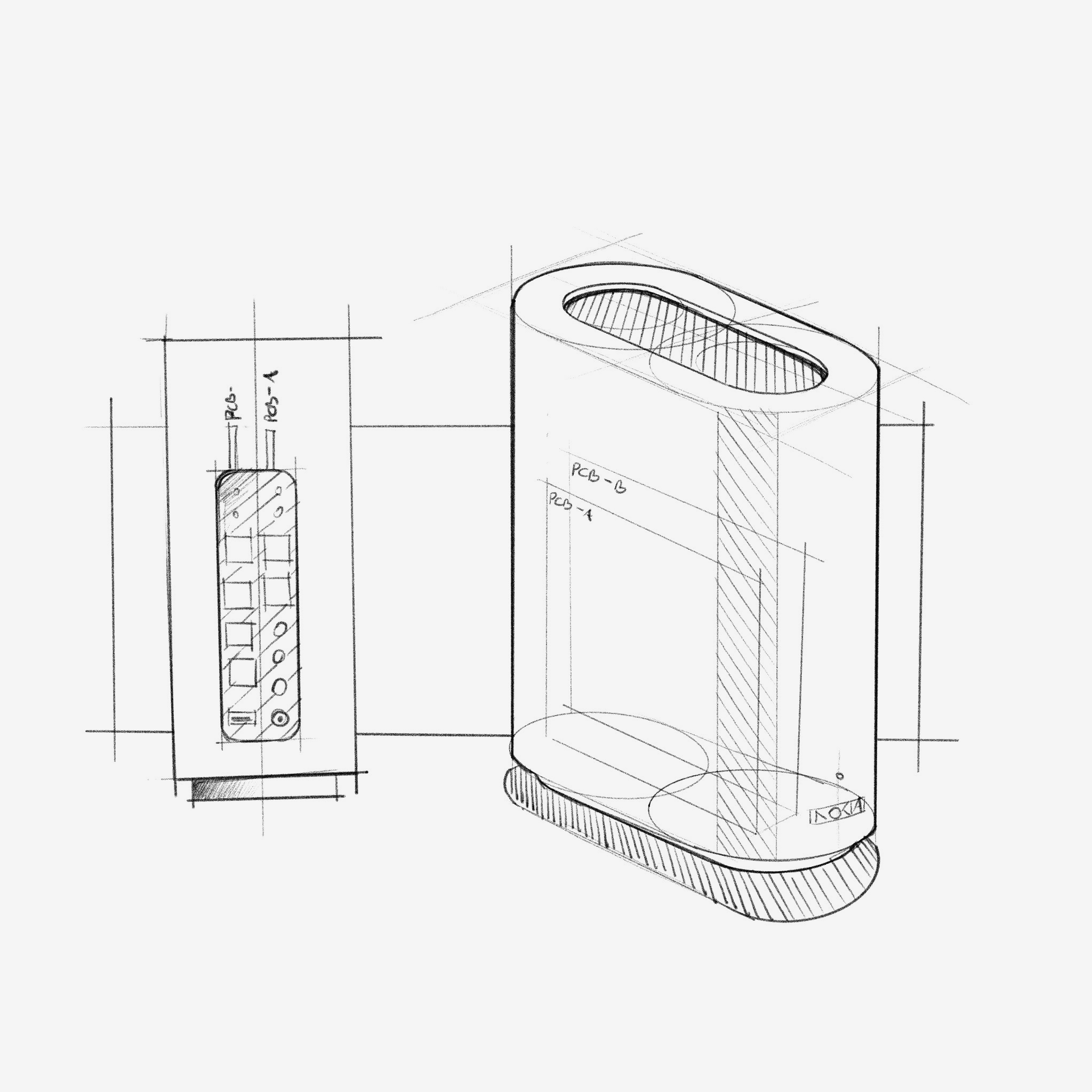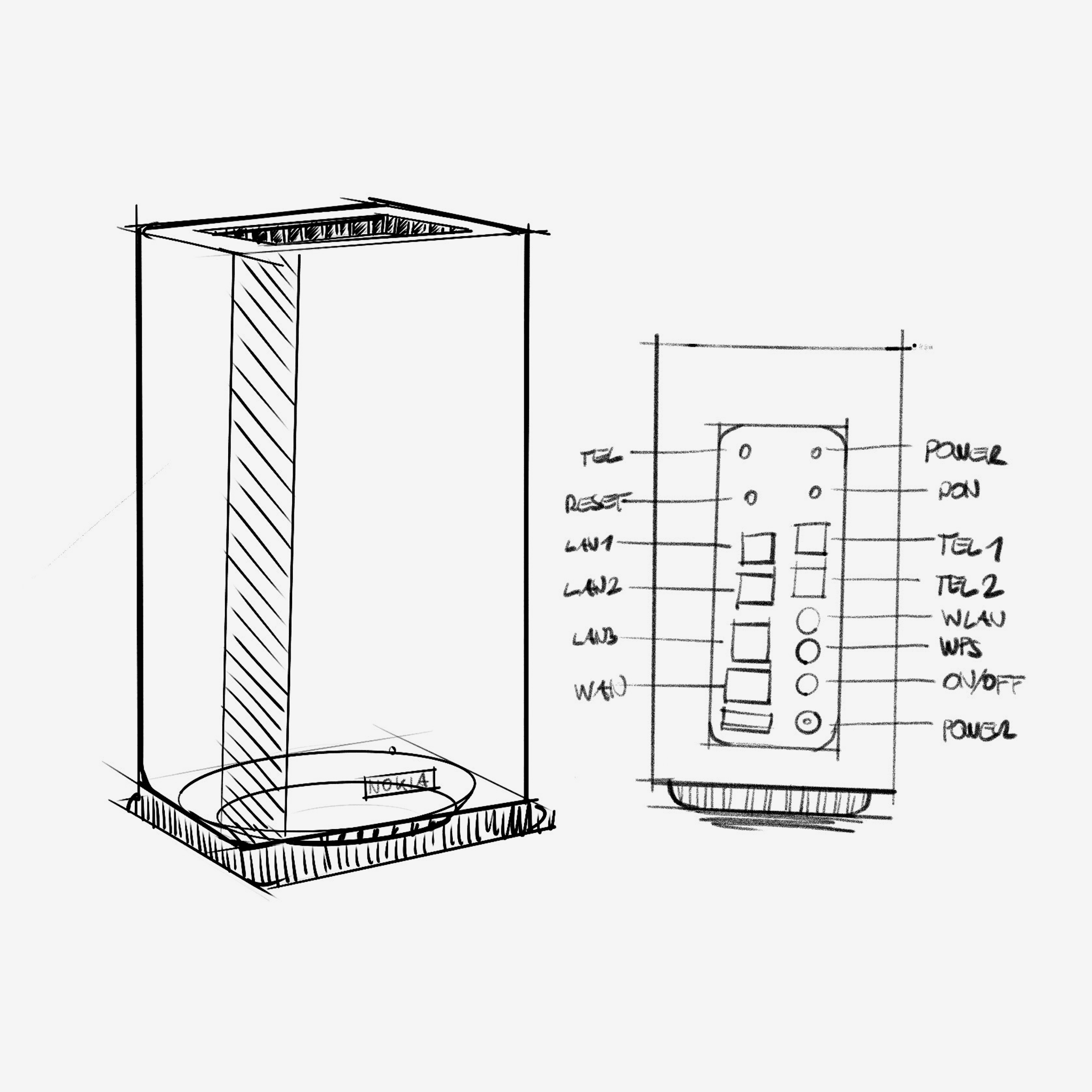 cooling, requiring continuous airflow through the enclosure to dissipate heat from the internal heatsink. Alongside antenna clearance, thermal management became one of the primary drivers in the design process. The challenge was to integrate sufficient ventilation area while maintaining the calm, minimal appearance that defines the product.