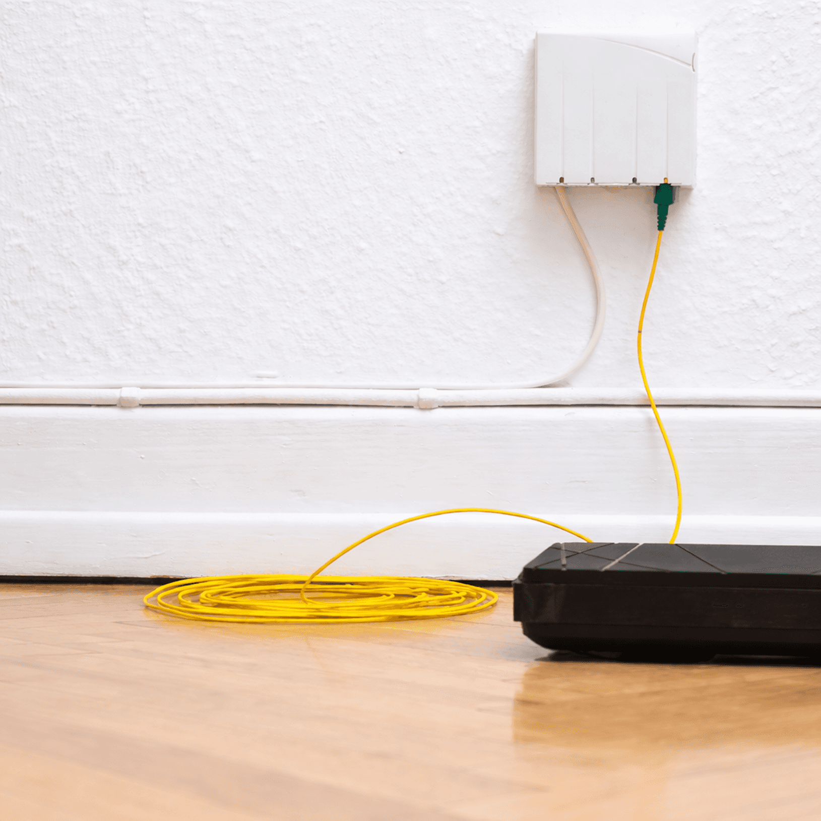 resting loosely on the floor. This exposes it to everyday hazards: vacuum cleaners running over it, people stepping on it, or pets interacting with it. These seemingly minor incidents frequently result in damaged connections, leading to service disruptions and costly technician visits for repair.